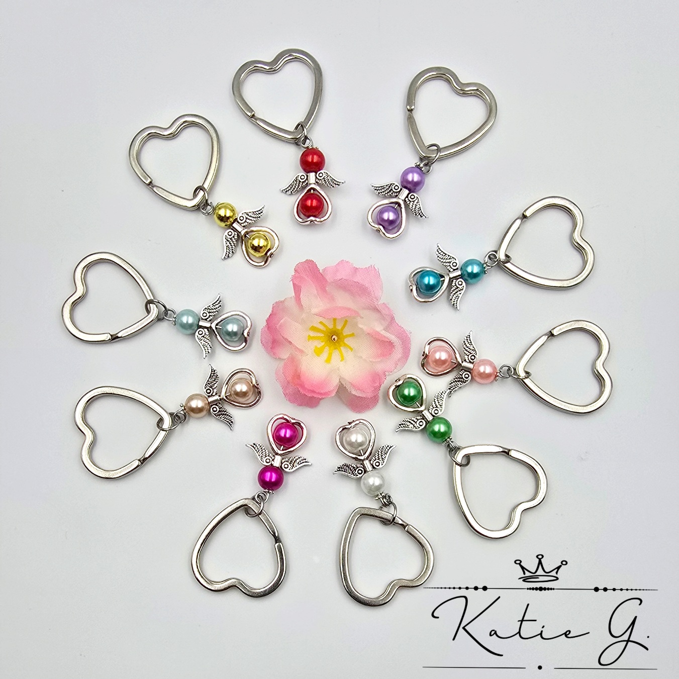 10 db teklagyöngy angyalka szív formájú kulcstartó - vegyes szín
