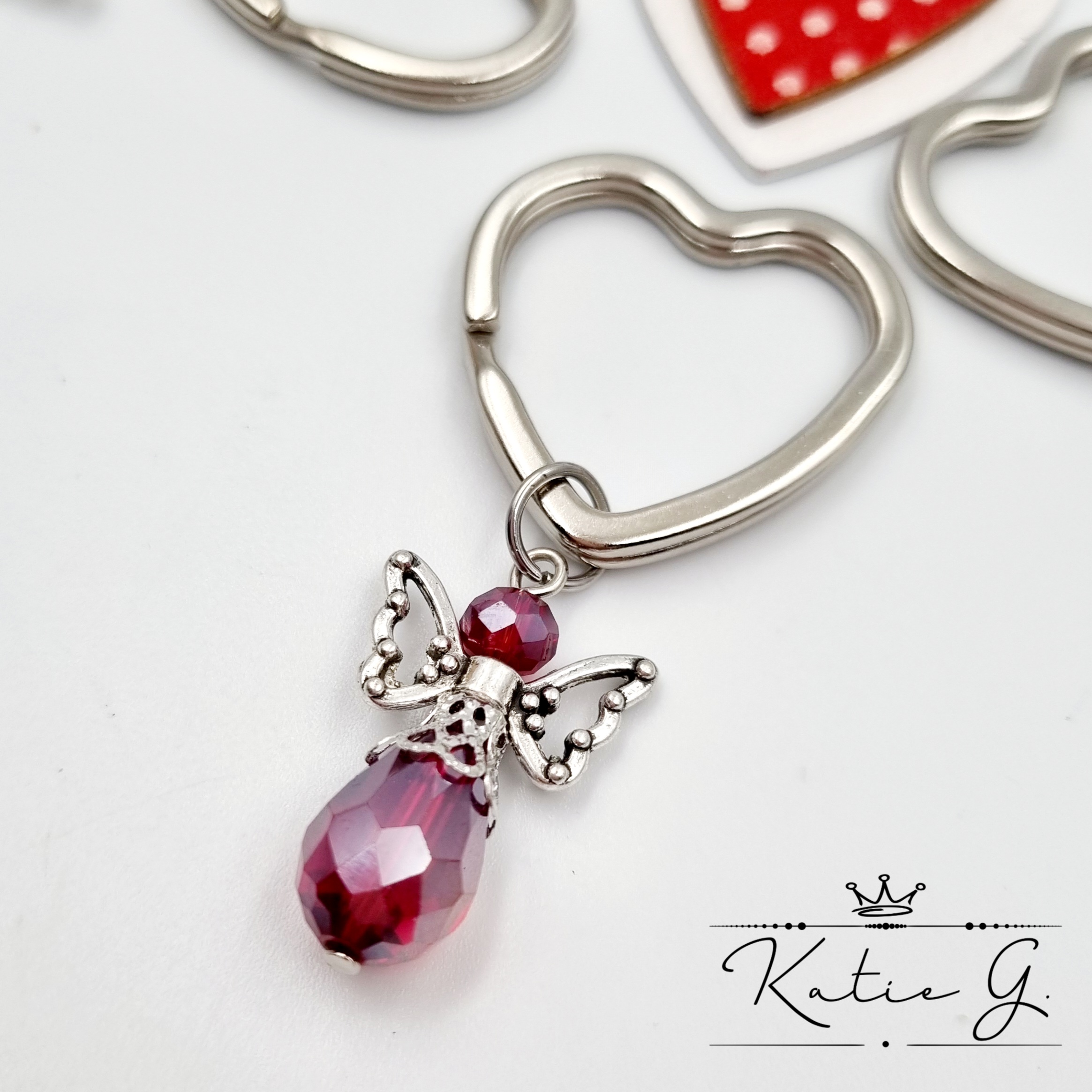 Kezdőlap » Gyöngy angyalkák gyöngy díszek » 5 db üveggyöngy angyalka szív formájú kulcstartó
