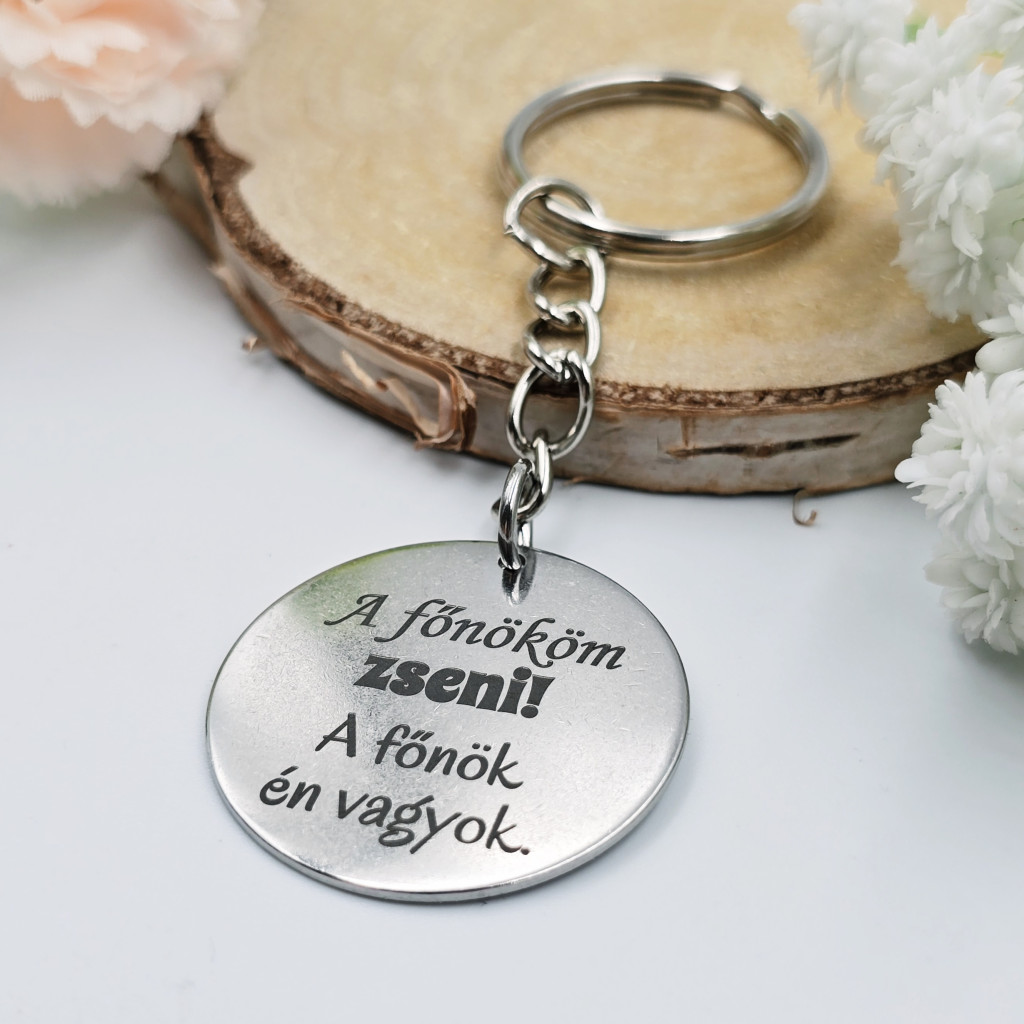 Kezdőlap » Gravírozott kulcstartók » "A főnököm zseni!" kulcstartó