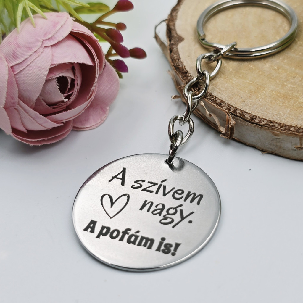 Kezdőlap » Gravírozott kulcstartók » „A szívem nagy. A pofám is!” kulcstartó