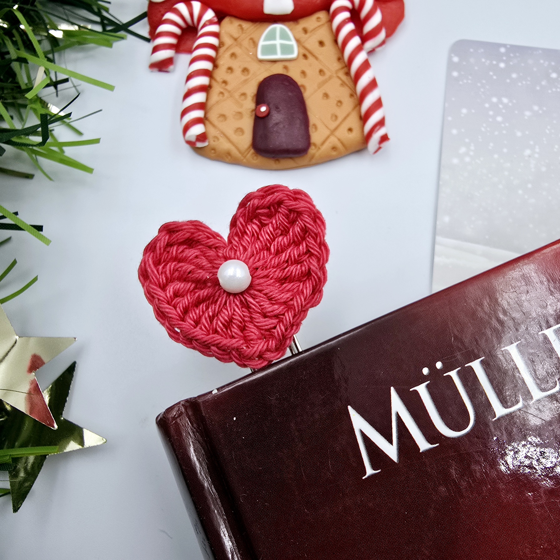 Fedezd fel a tökéletes karácsonyi ajándékot szeretteid számára ezzel az egyedi, kézzel horgolt szív alakú könyvjelzővel! A finoman kidolgozott, almapiros pamut fonalból készült szív átmérője 3,5 cm, míg a teljes könyvjelző hossza 6,5 cm, így praktikus és elegáns kiegészítő lehet minden könyvrajongó számára. A horgolt szív óriás gémkapocsra van rögzítve.