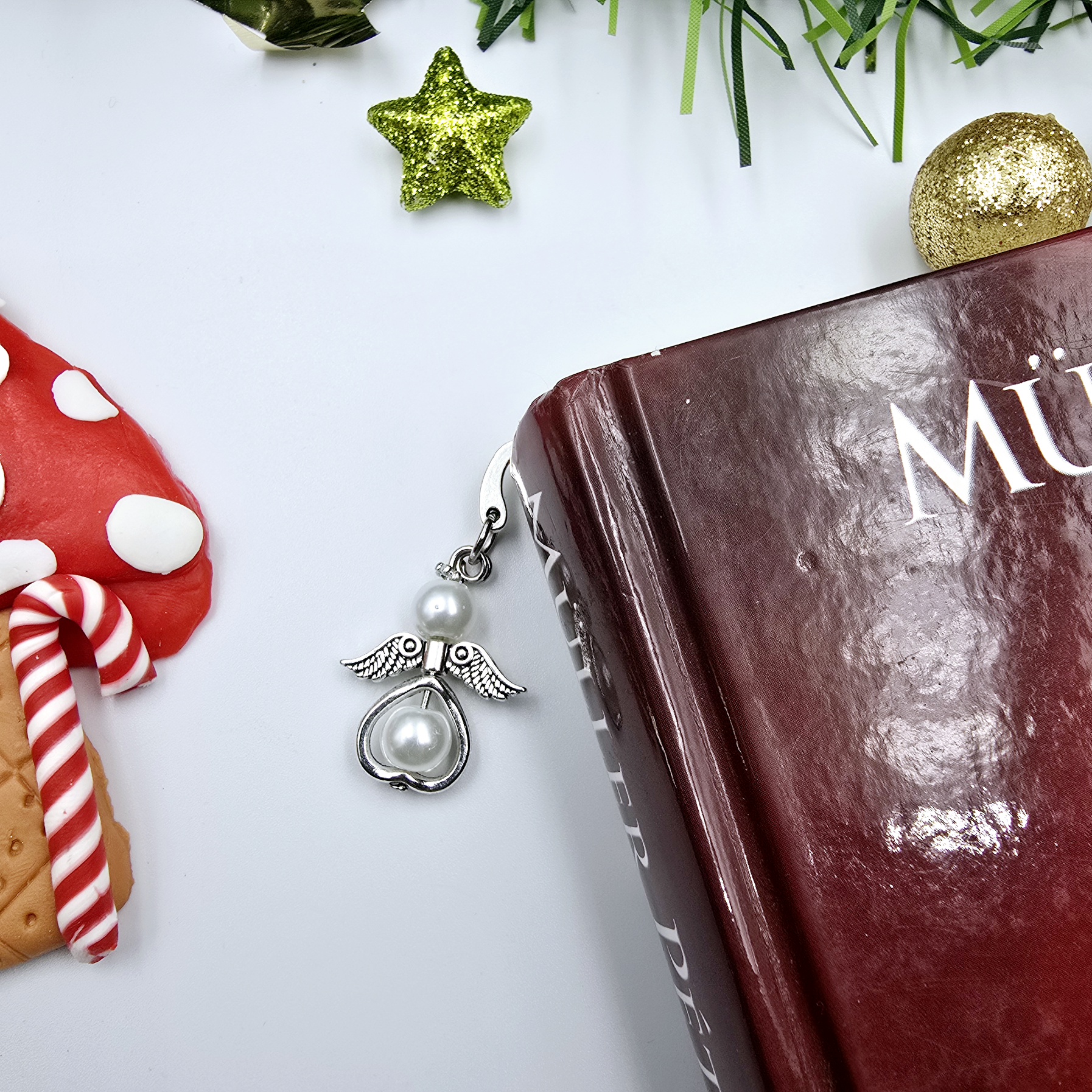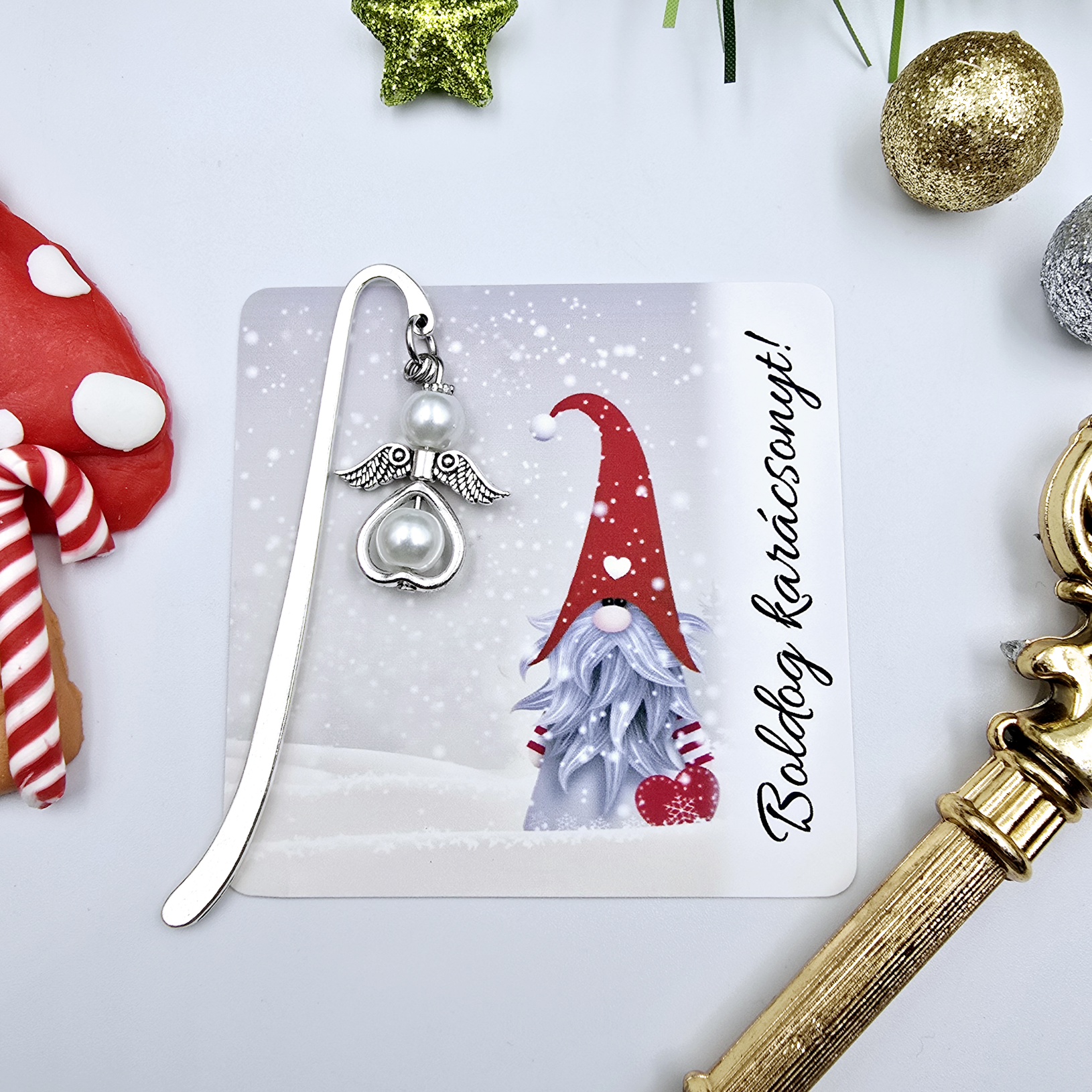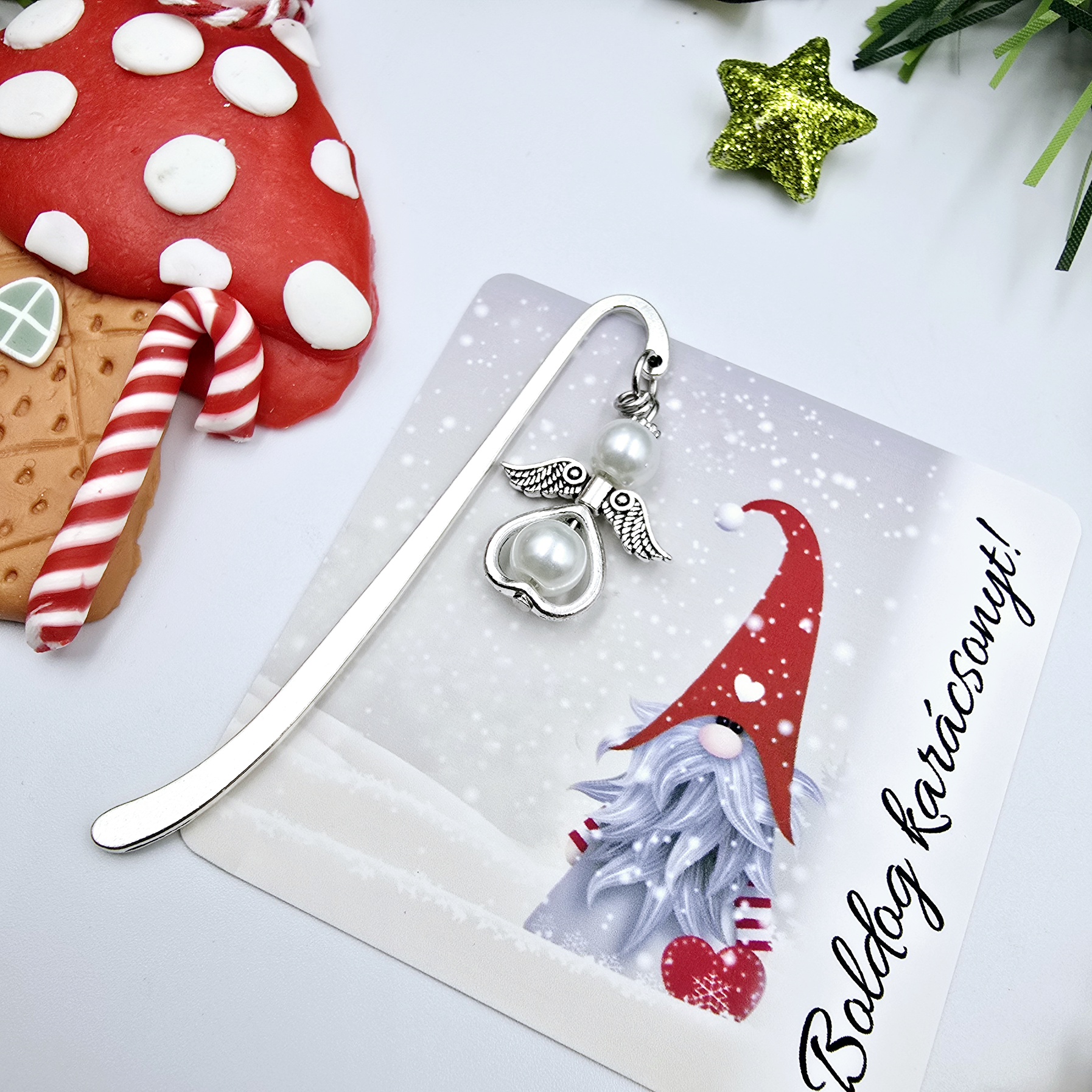 Ez a különleges karácsonyi angyalkás könyvjelző tökéletes választás szeretteink számára, akik értékelik az egyedi és kézzel készített ajándékokat, és ráadásul még az olvasás is a hobbijuk. Az angyalka mérete kb. 2,8 cm, a könyvjelző szára 8 cm. A könyvjelzőt egy karácsonyi ajándékkártyával szállítjuk, melyen a "Boldog karácsonyt!" üzenet olvasható. (Egyedi, személyre szabható felirat ennél a terméknél nem kérhető.)