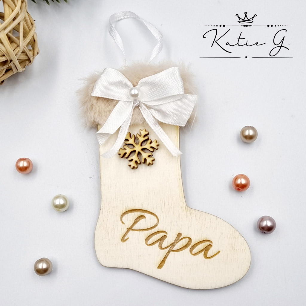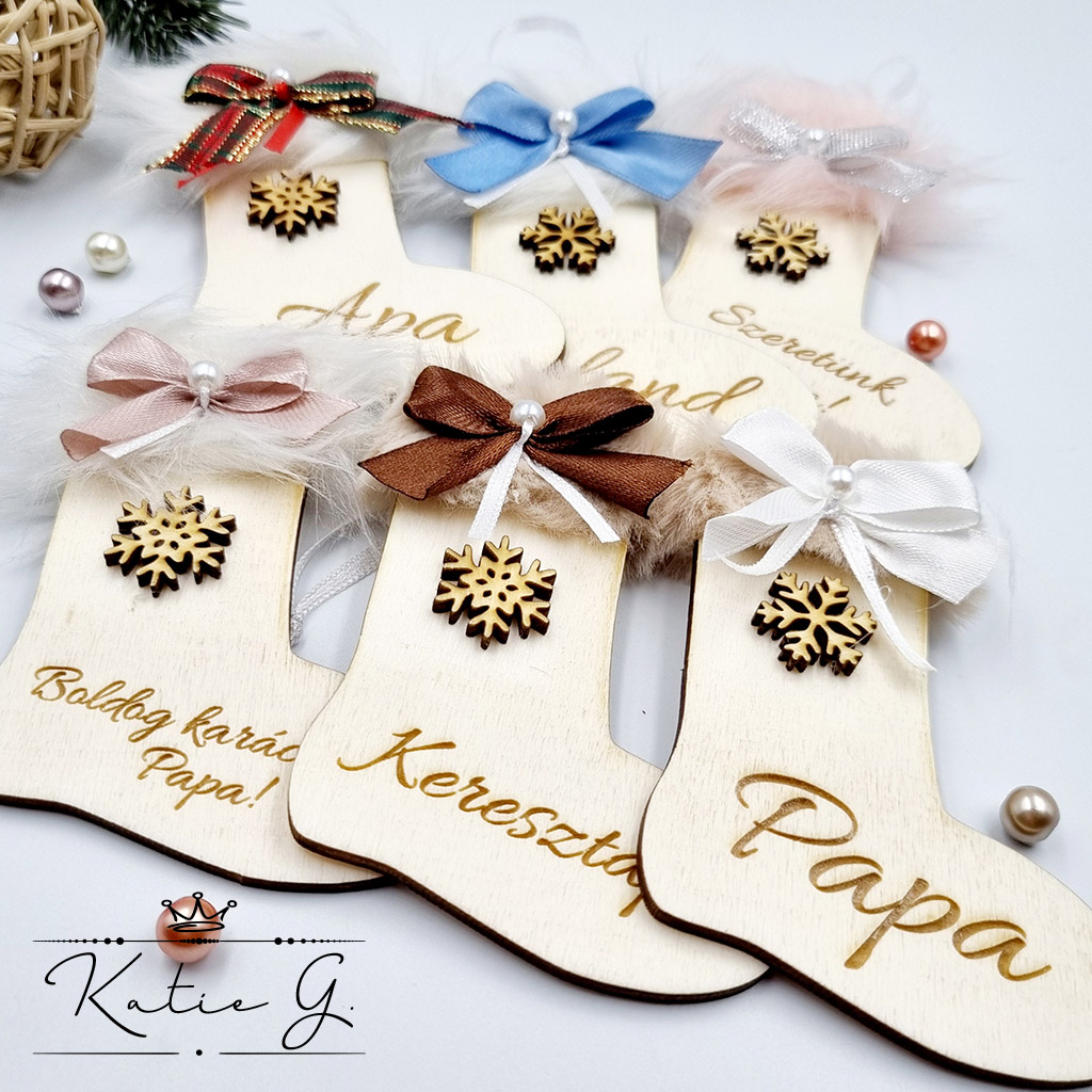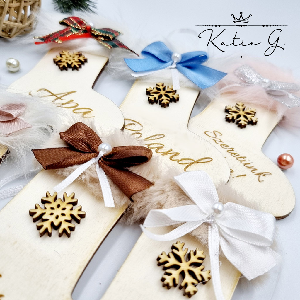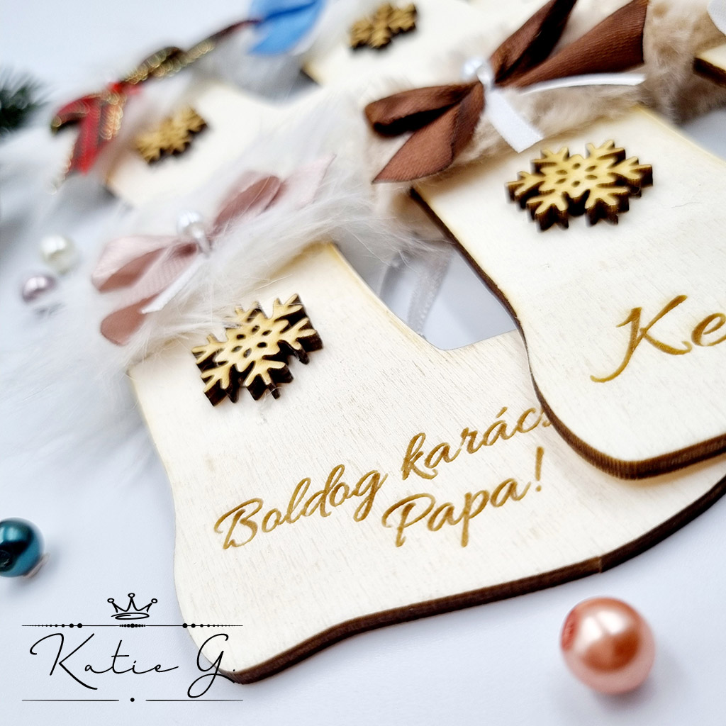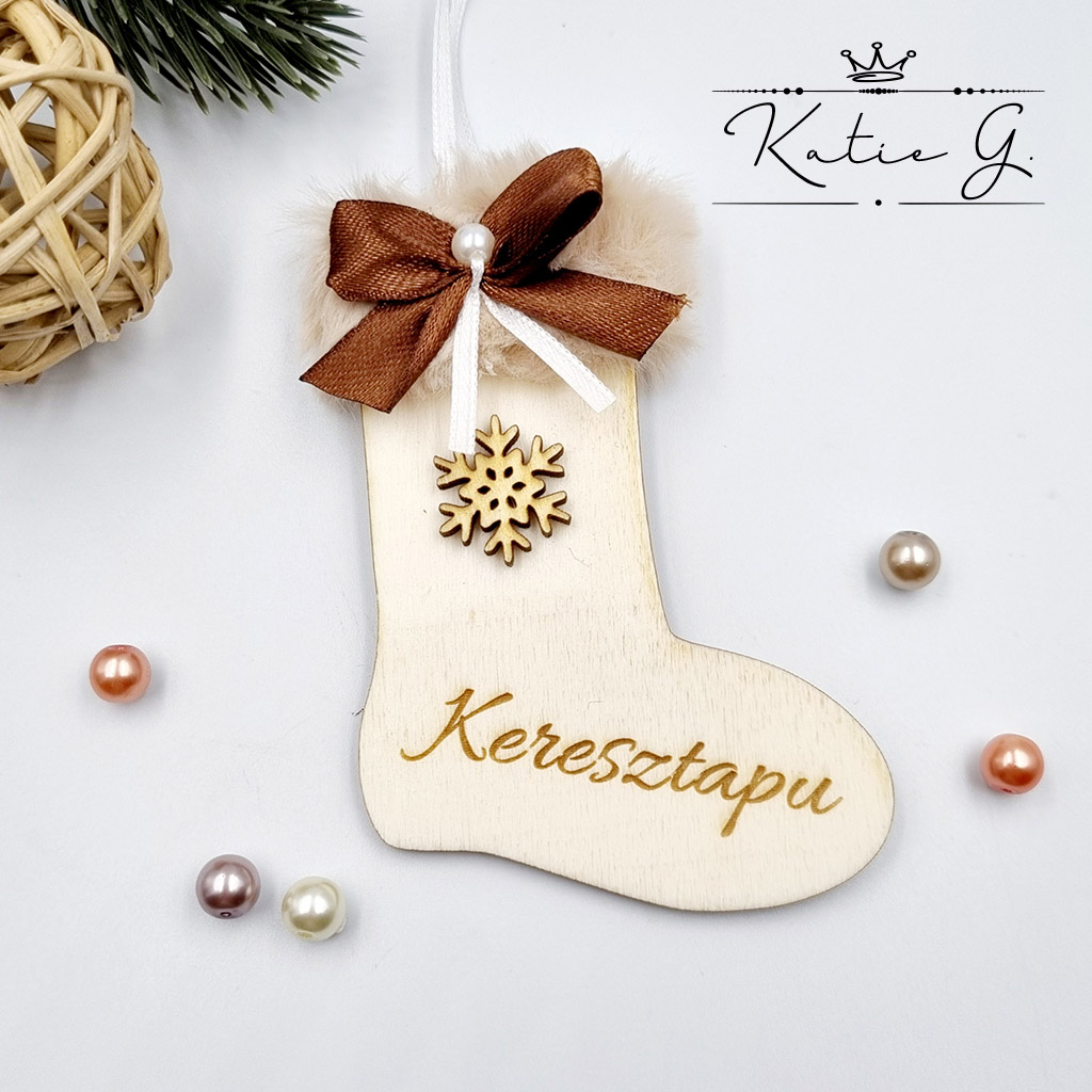 Kezdőlap » Egyedi karácsonyfadíszek » Gravírozott fa karácsonyfadísz egyedi névvel, csizma, bézs szőrmével