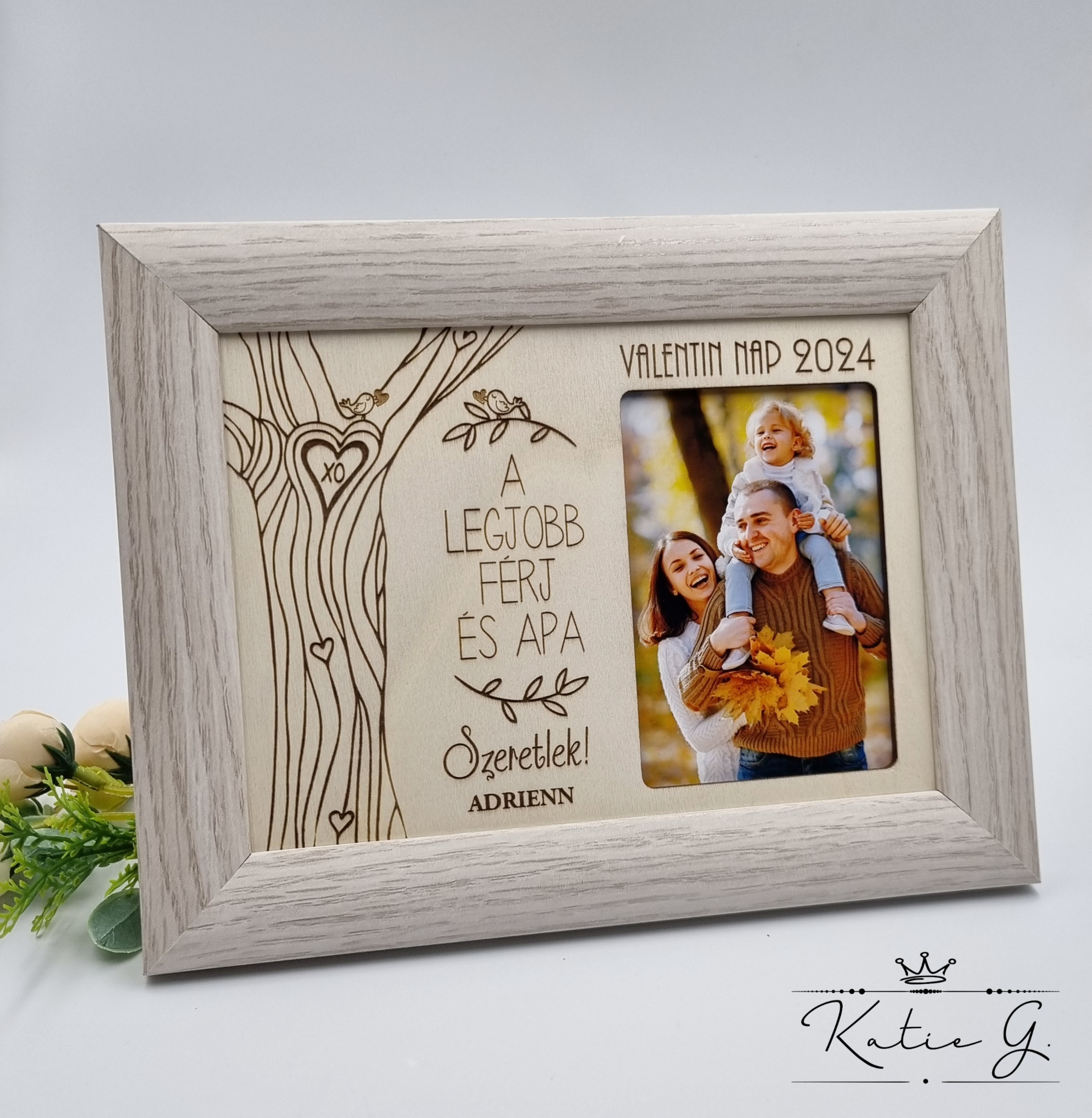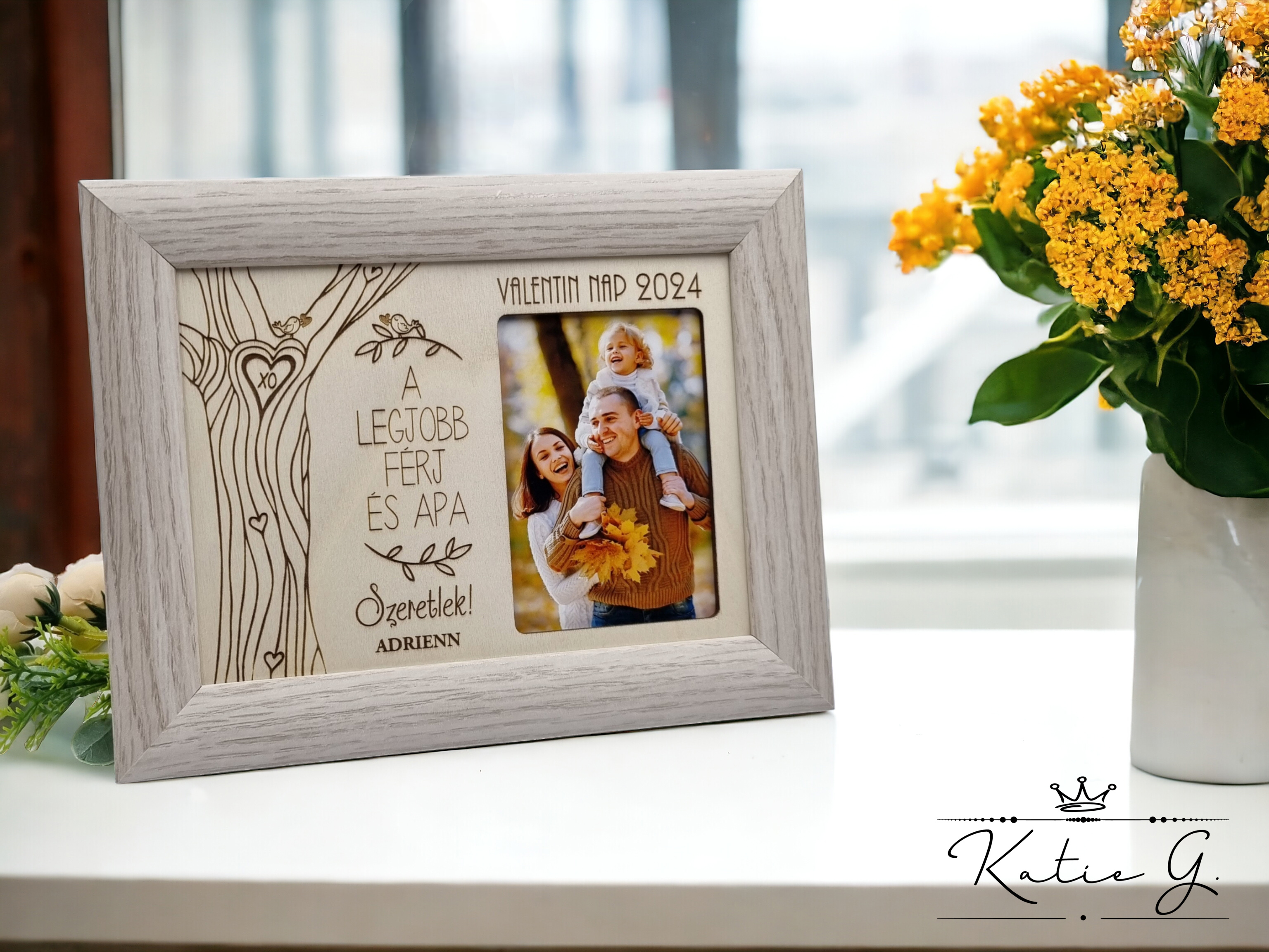 Kezdőlap » Kézműves ajándékok » Gravírozott fa képkeret egyedi felirattal, saját fényképpel 01.