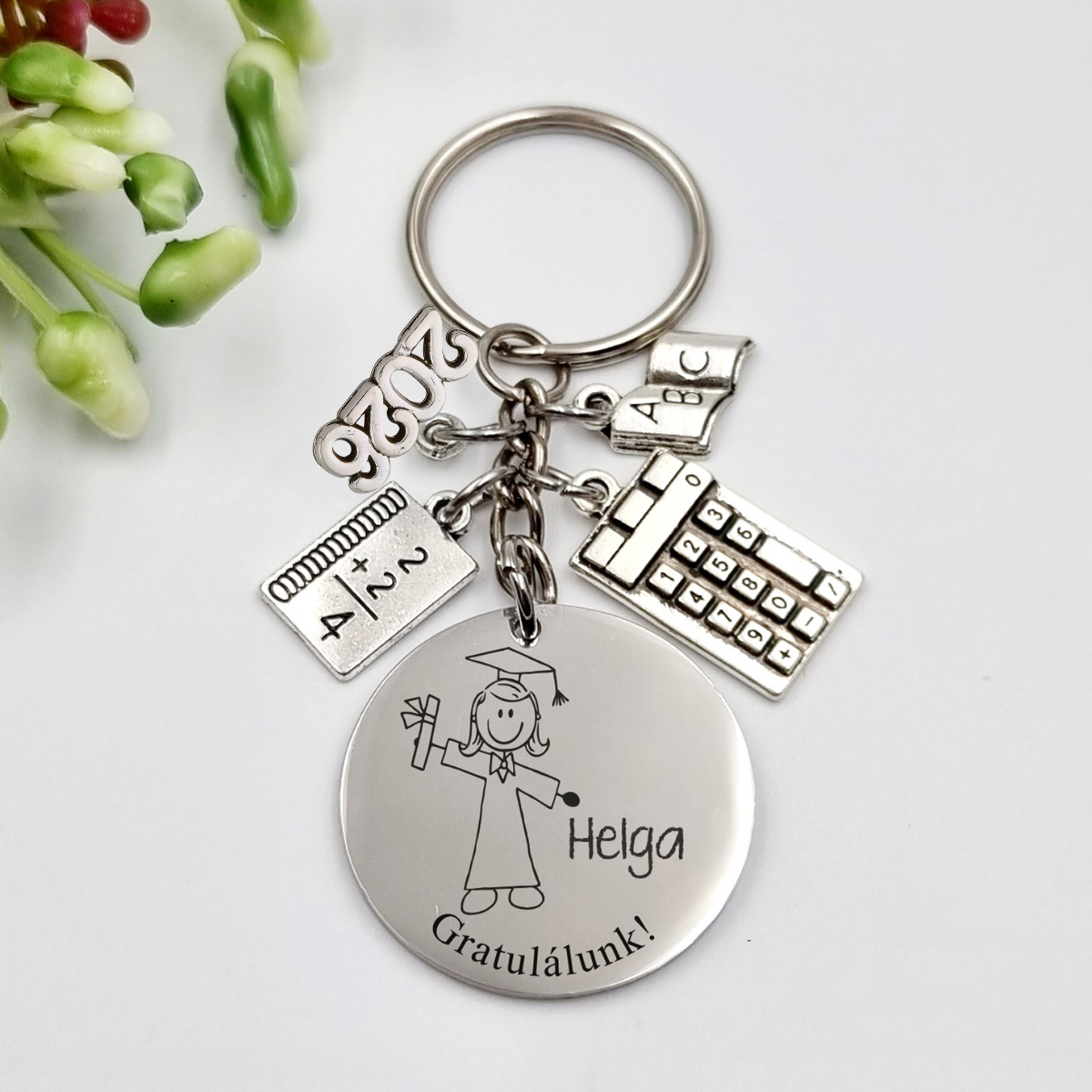 Grafikás kulcstartó megszemélyesítve - "Ballagás" kulcstartócsalád