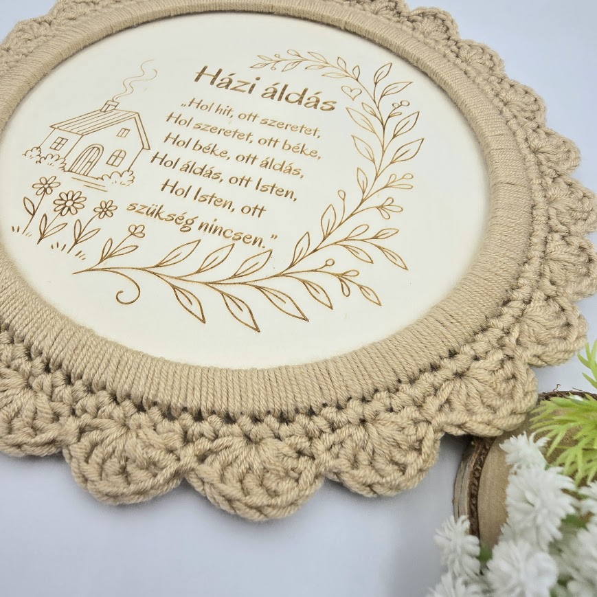 Kezdőlap » Kézműves ajándékok » Gravírozott házi áldás horgolt szegéllyel- 30 cm