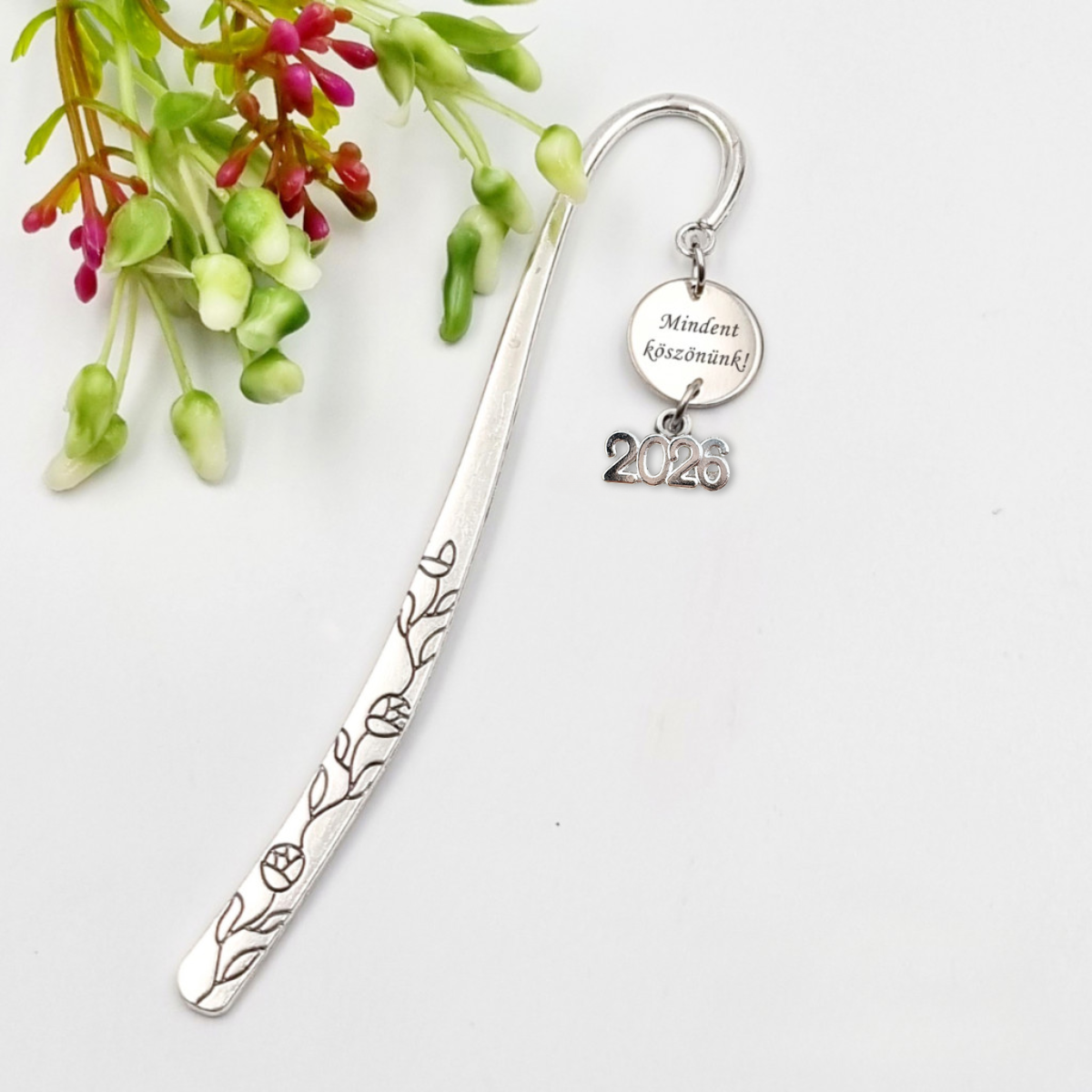 Egyedi gravírozott könyvjelző - 2026 charmmal