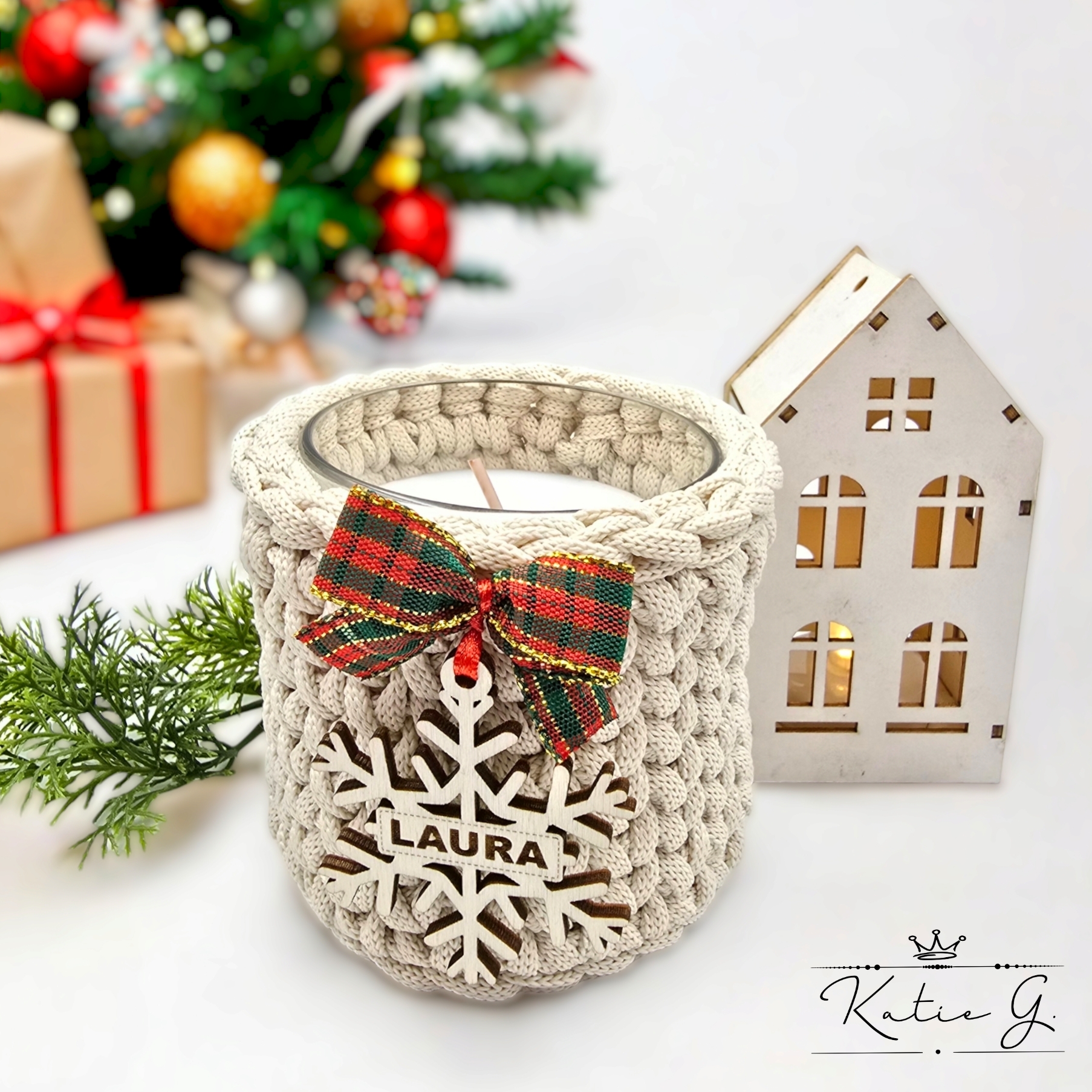 Kezdőlap » Kézműves ajándékok karácsonyra » Horgolt karácsonyi gyertyatartó egyedi felirattal (002)