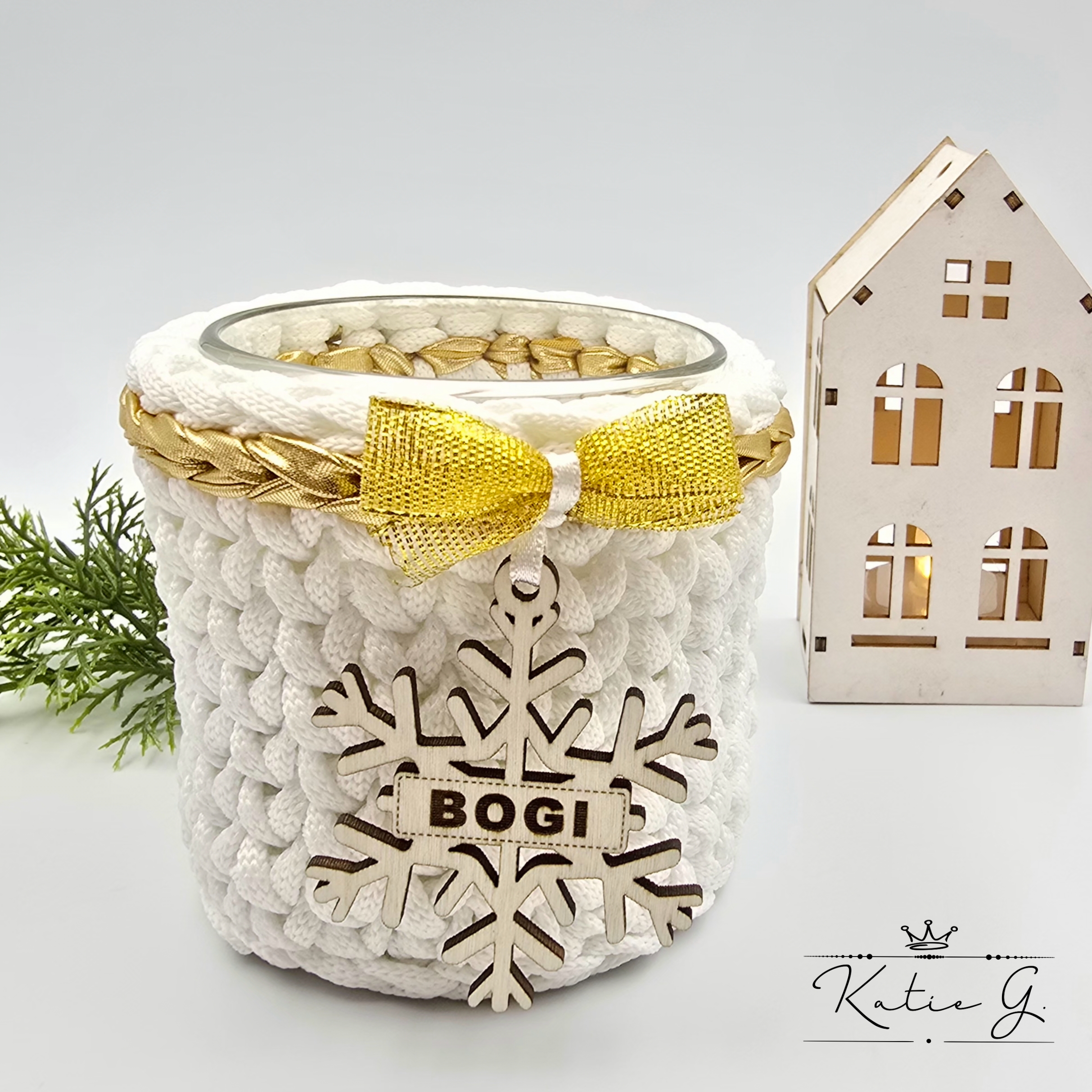 Kezdőlap » Kézműves ajándékok karácsonyra » Horgolt karácsonyi gyertyatartó egyedi felirattal (004)