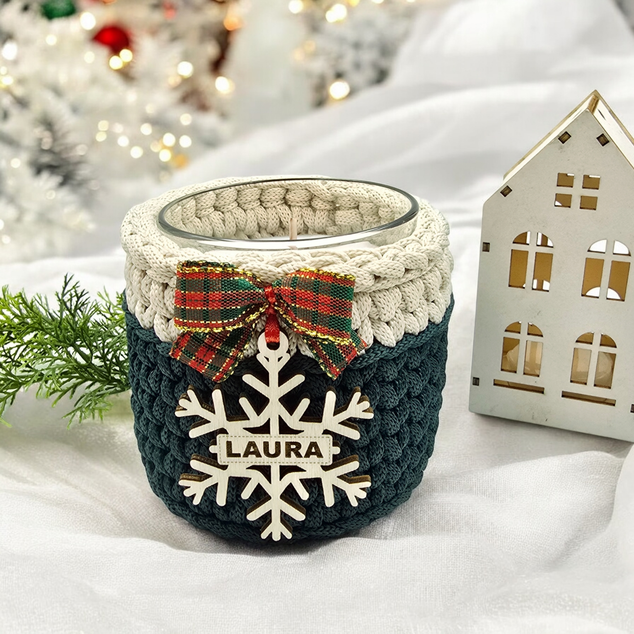 Kezdőlap » Kézműves ajándékok karácsonyra » Horgolt karácsonyi gyertyatartó egyedi felirattal (005)