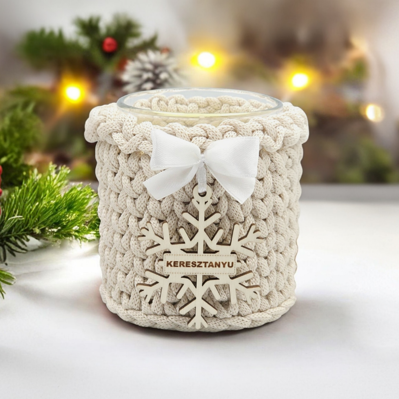 Kezdőlap » Kézműves ajándékok karácsonyra » Horgolt karácsonyi gyertyatartó egyedi felirattal (011)