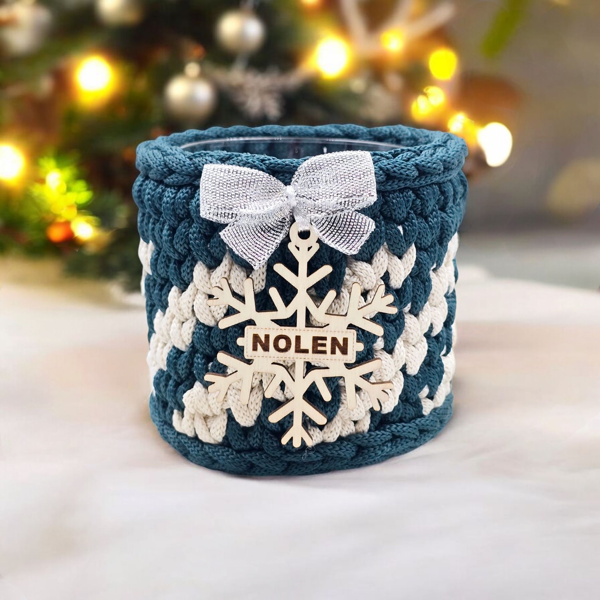 Kezdőlap » Kézműves ajándékok karácsonyra » Horgolt karácsonyi gyertyatartó egyedi felirattal (012)