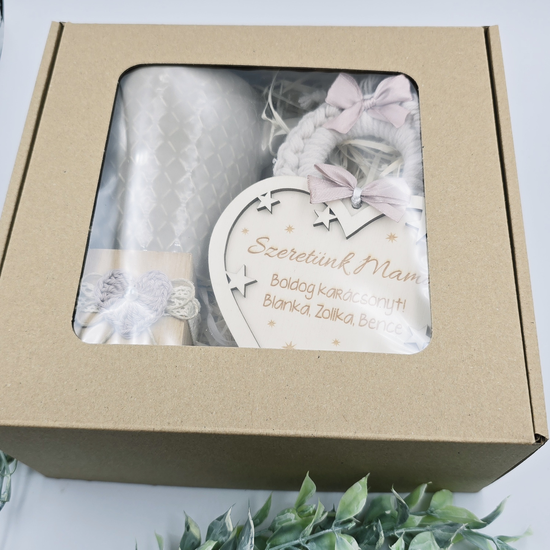 Ez a kézzel összeállított karácsonyi ajándékdoboz természetes, meleg hangulatot idéz. Kézműves díszeivel és egyedi gravírozásával igazi személyes meglepetés, amely szívből adható karácsonyra.