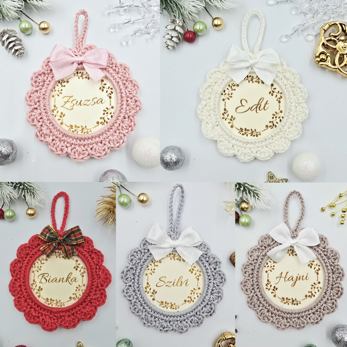 Ez a kézműves ajándékdoboz természetes anyagokból és harmonikus színvilággal készült, tökéletes választás karácsonyi meglepetésként. A horgolt szélű karácsonyfadísz egyedi felirattal készül, így igazán személyes ajándék válhat belőle. Különösen szép választás tanároknak, óvó néniknek, barátnőknek vagy családtagoknak.