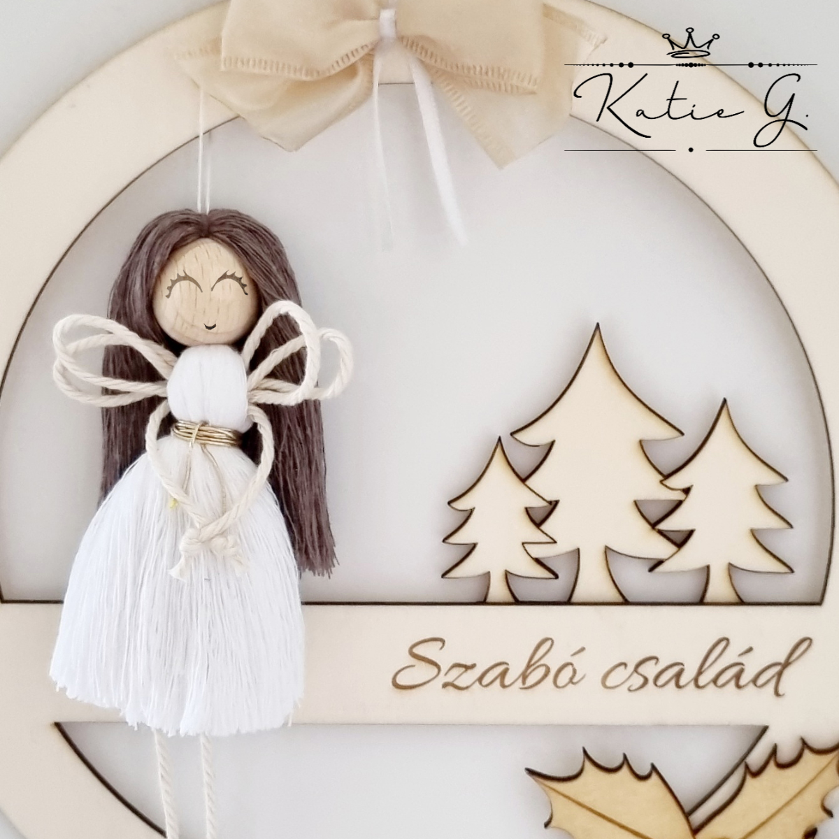 Kezdőlap » Kézműves ajándékok » Makramé angyalok, babák » Karácsonyi ajtódísz, falidísz egyedi felirattal - makramé angyalkával (1.)