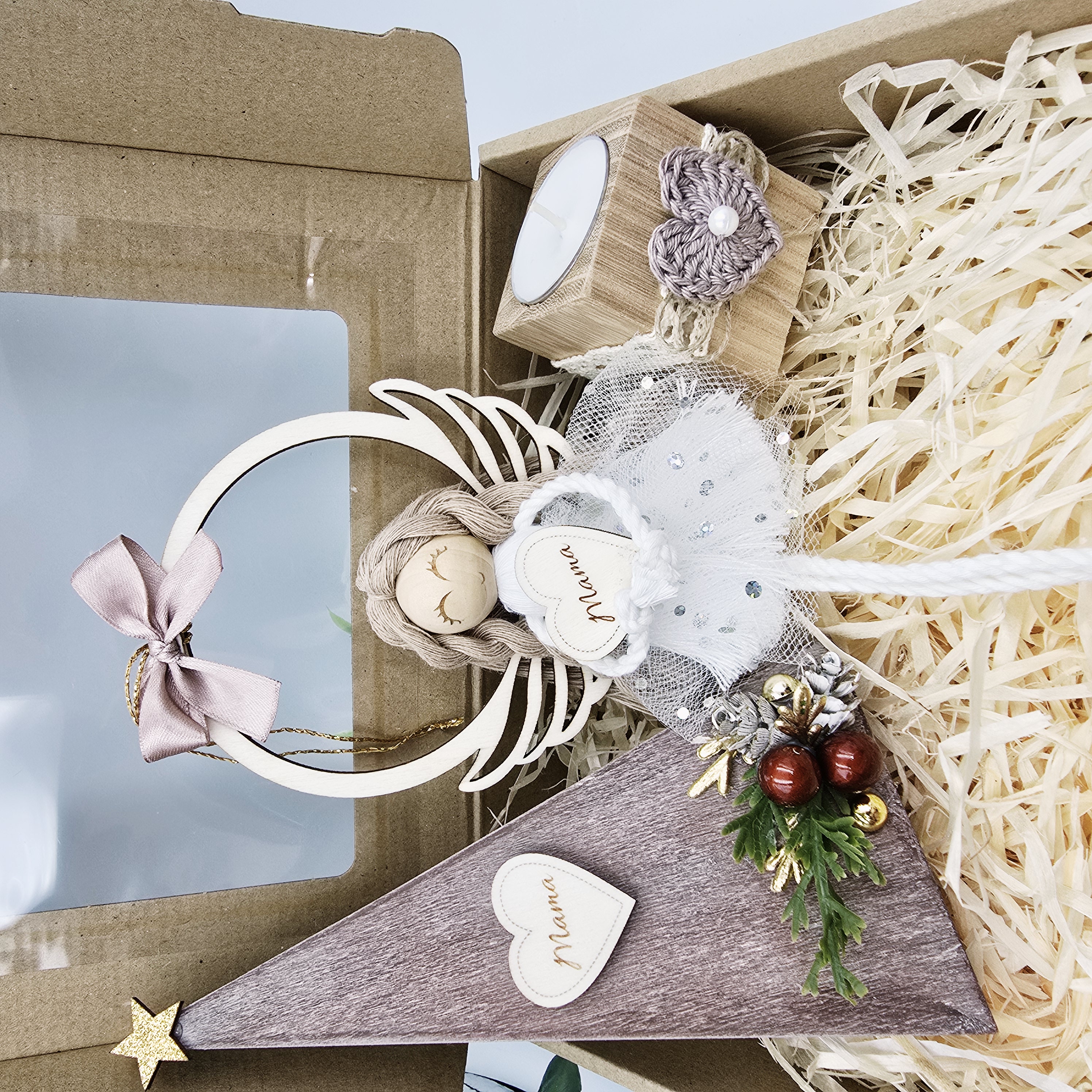 Ez az ajándékdoboz kedves és egyedi választás lehet karácsonyra — ideális ajándék anyának, nagymamának, barátnak vagy kollégának, ha természetes és meghitt hangulatú meglepetést keresel.