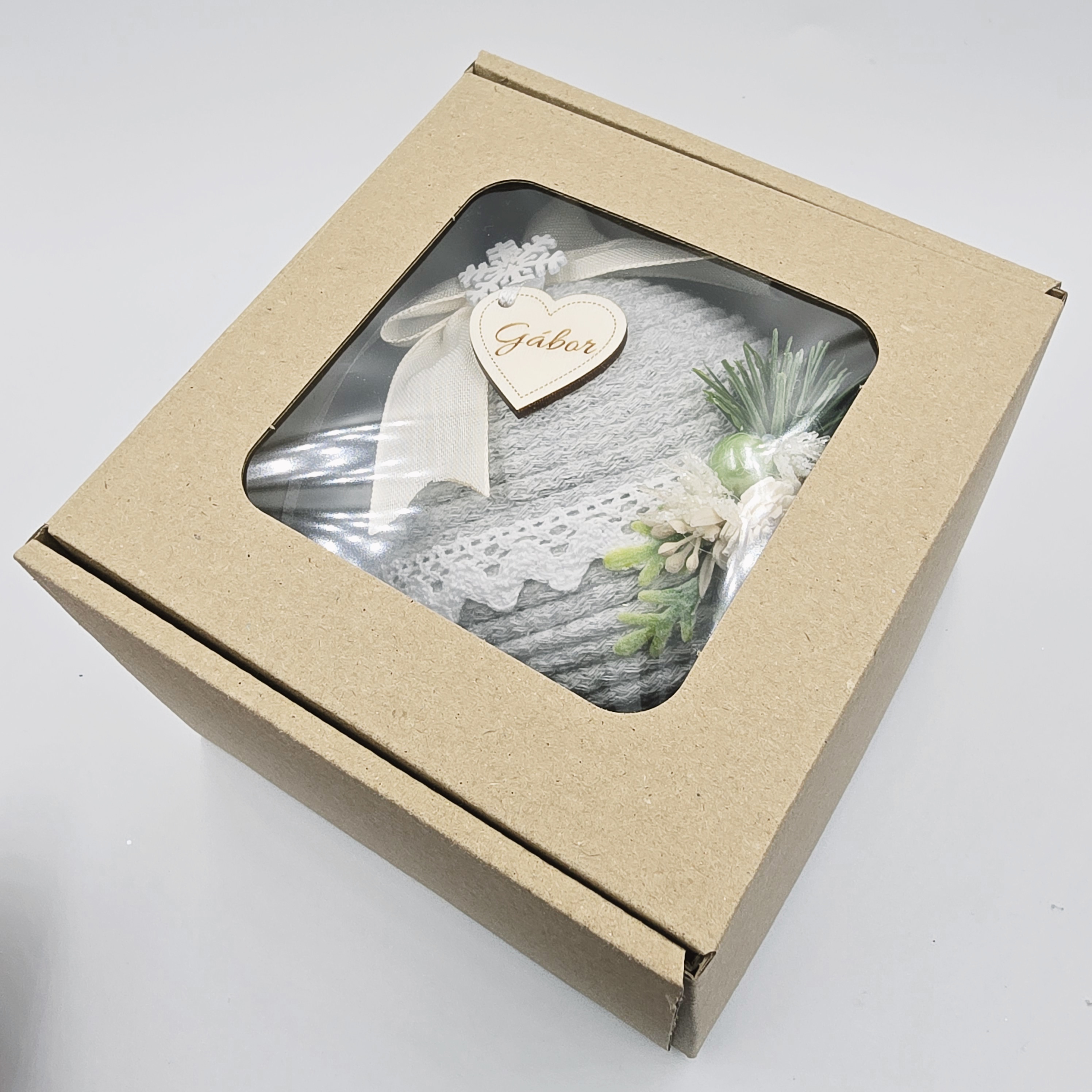 Felár ellenében választható ablakos karton ajándékdoboz, melyet a legördülő ablakban lehet beállítani.