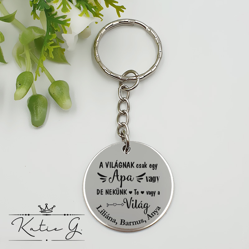 Kezdőlap » Gravírozott kulcstartók » Kulcstartó "A világnak csak egy Apa vagy..." felirattal, egyedi nevekkel