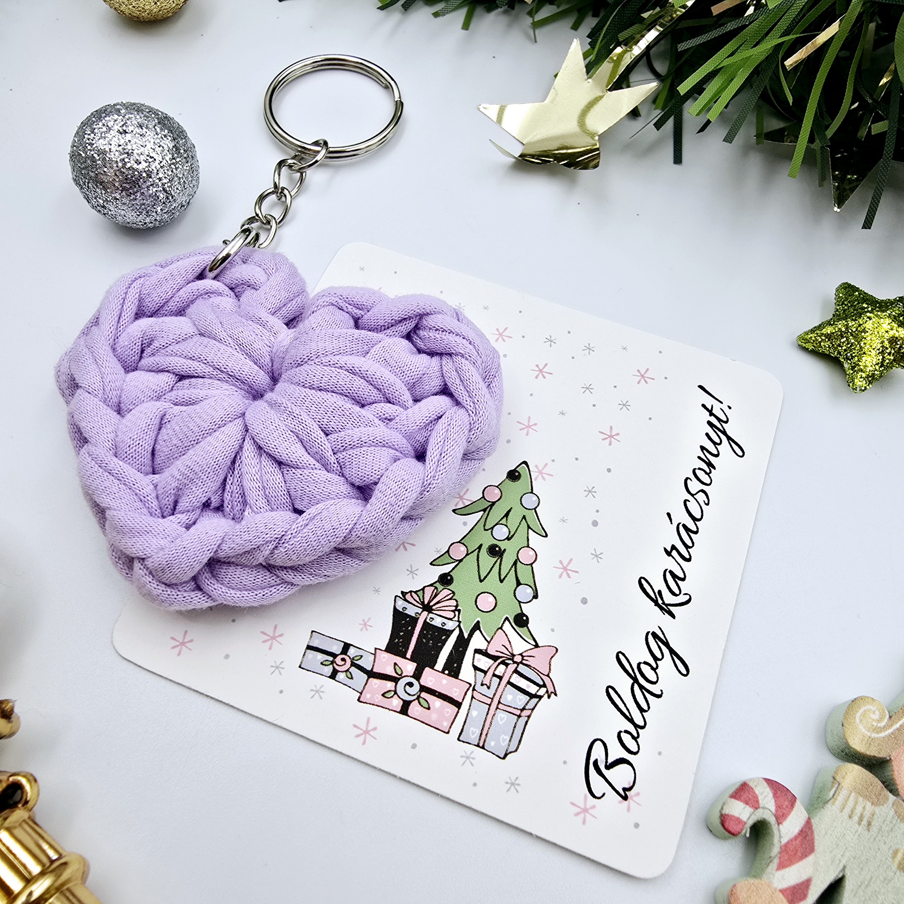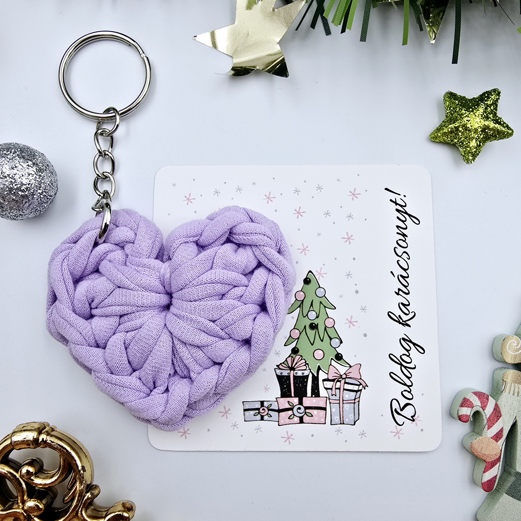 Kezdőlap » Apró ajándékok - minden 990 Ft » Lila színű horgolt szív kulcstartó ajándékkártyával