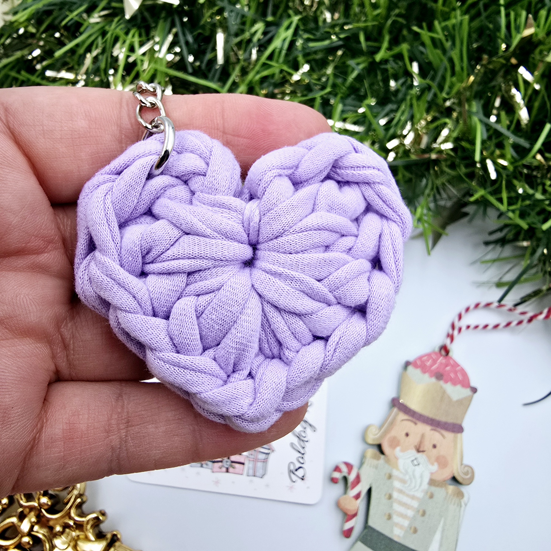 Lepd meg szeretteidet egy különleges, kézzel készített szív alakú kulcstartóval, amelyet a szeretet és gondoskodás ihletett! Ez a 6x5 cm-es, minőségi pólófonalból készült szív kulcstartó bármilyen táskára vagy kulcscsomóra tökéletesen illik.