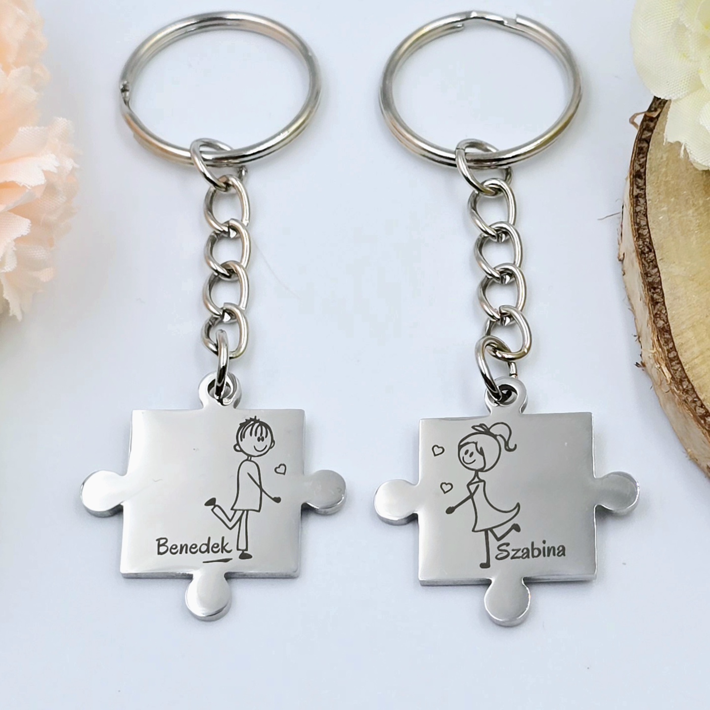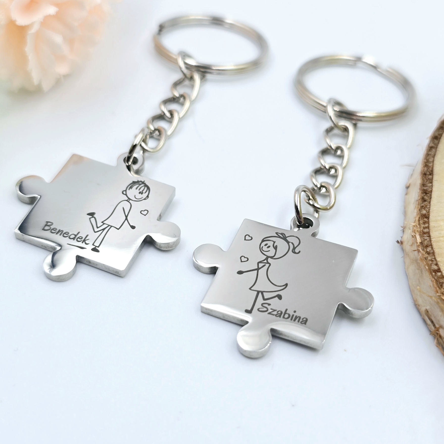 Páros puzzle kulcstartó személyre szabott felirattal, grafikával - Love 1.