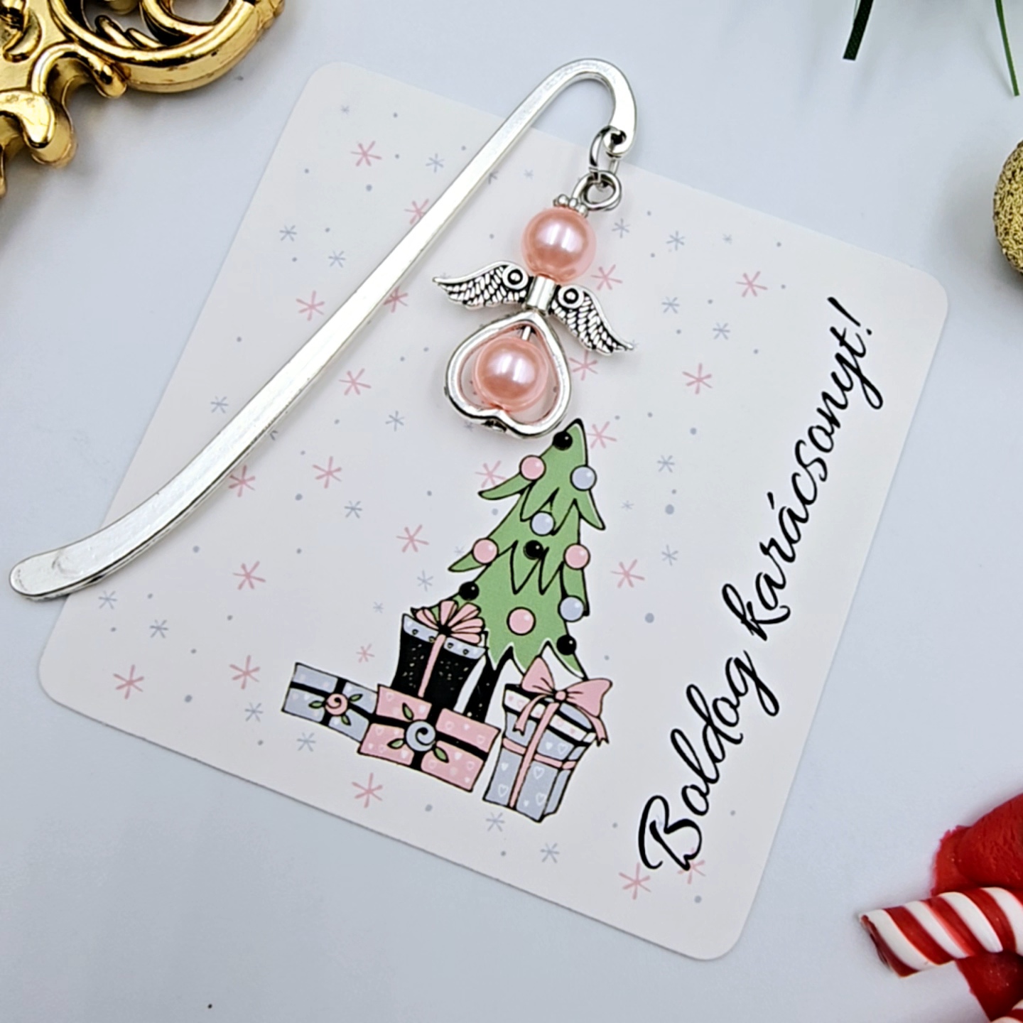 Ez a különleges karácsonyi angyalkás könyvjelző tökéletes választás szeretteink számára, akik értékelik az egyedi és kézzel készített ajándékokat, és ráadásul még az olvasás is a hobbijuk. Az angyalka mérete kb. 2,8 cm, a könyvjelző szára 8 cm. A könyvjelzőt egy karácsonyi ajándékkártyával szállítjuk, melyen a "Boldog karácsonyt!" üzenet olvasható. (Egyedi, személyre szabható felirat ennél a terméknél nem kérhető.)