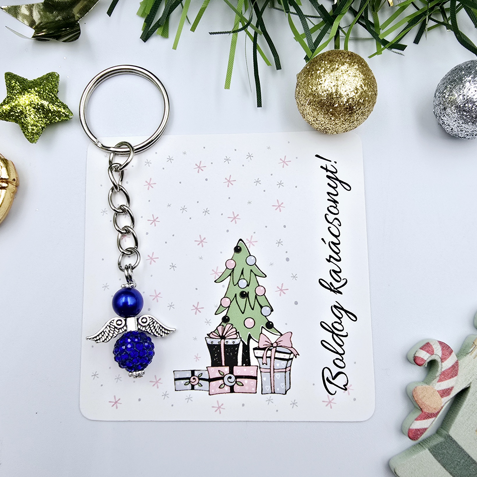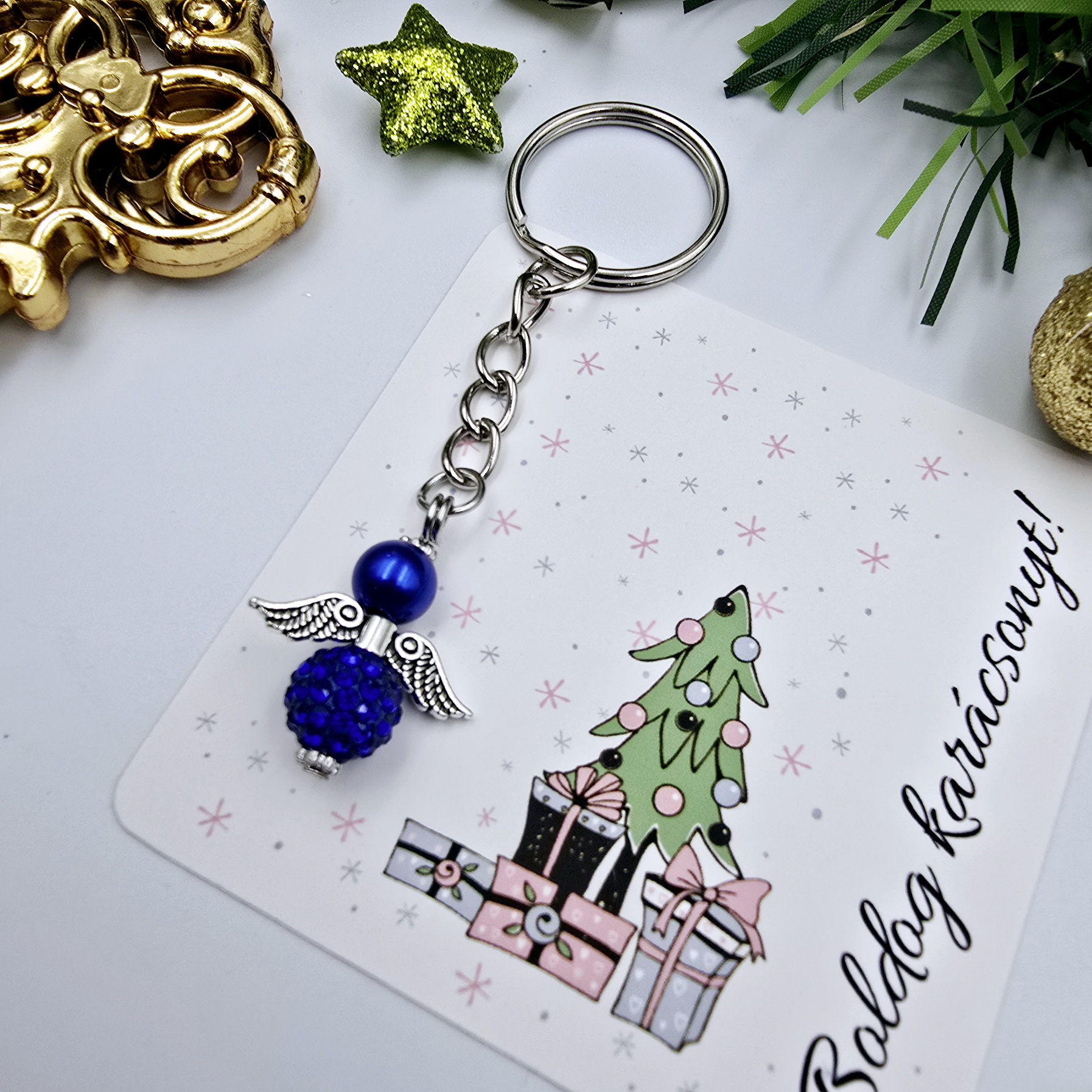 Kezdőlap » Apró ajándékok - minden 990 Ft » Sötétkék csillogó angyalkás kulcstartó ajándékkártyával