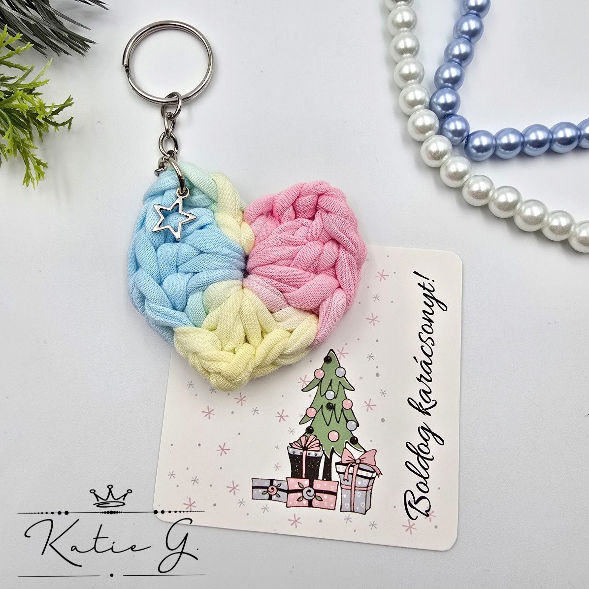 Kezdőlap » Apró ajándékok - minden 990 Ft » Szivárvány színű horgolt szív kulcstartó ajándékkártyával