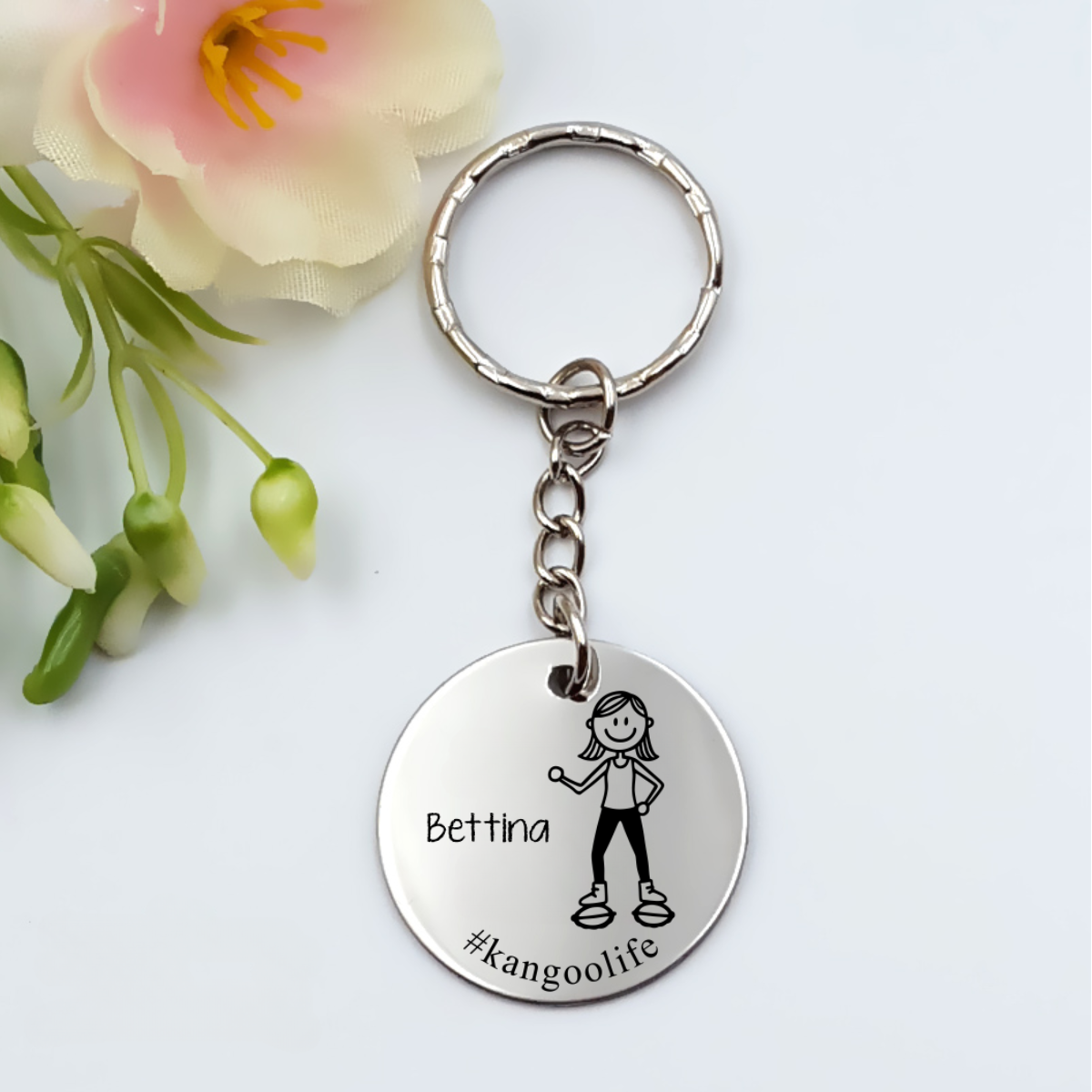 Kezdőlap » Gravírozott kulcstartók » #kangoolife - női kulcstartó grafikával, egyedi névvel, felirattal